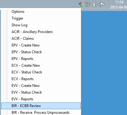 To view this screen right click on the Medilink Medicare Online icon in the taskbar notification area and click BIR - ECBB Review: